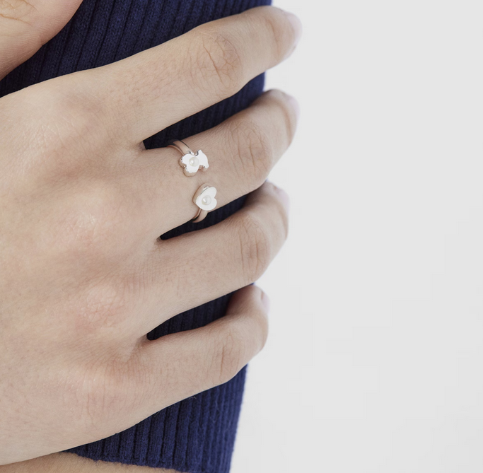 Silver Super Power Ring with Pearls Bear and Heart motifs