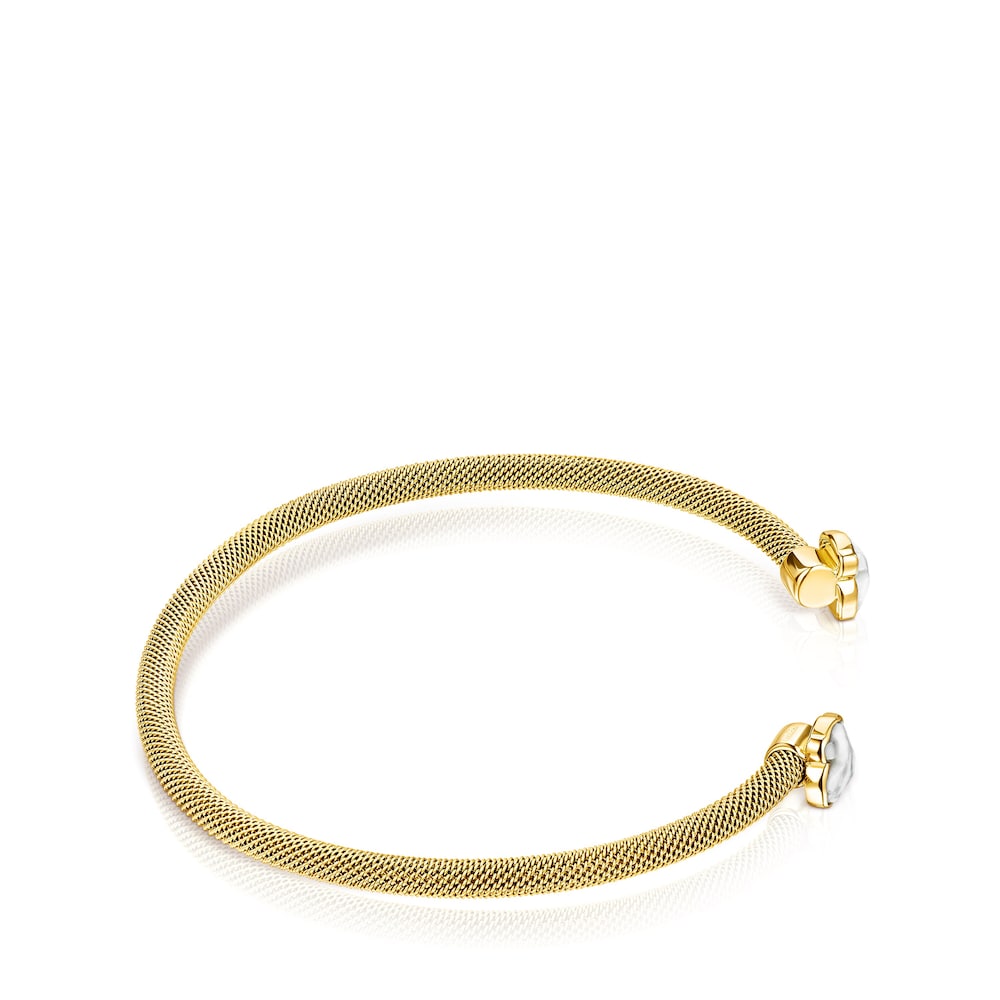 Fine gold-colored IP Steel Mesh Color Bracelet with Howlite