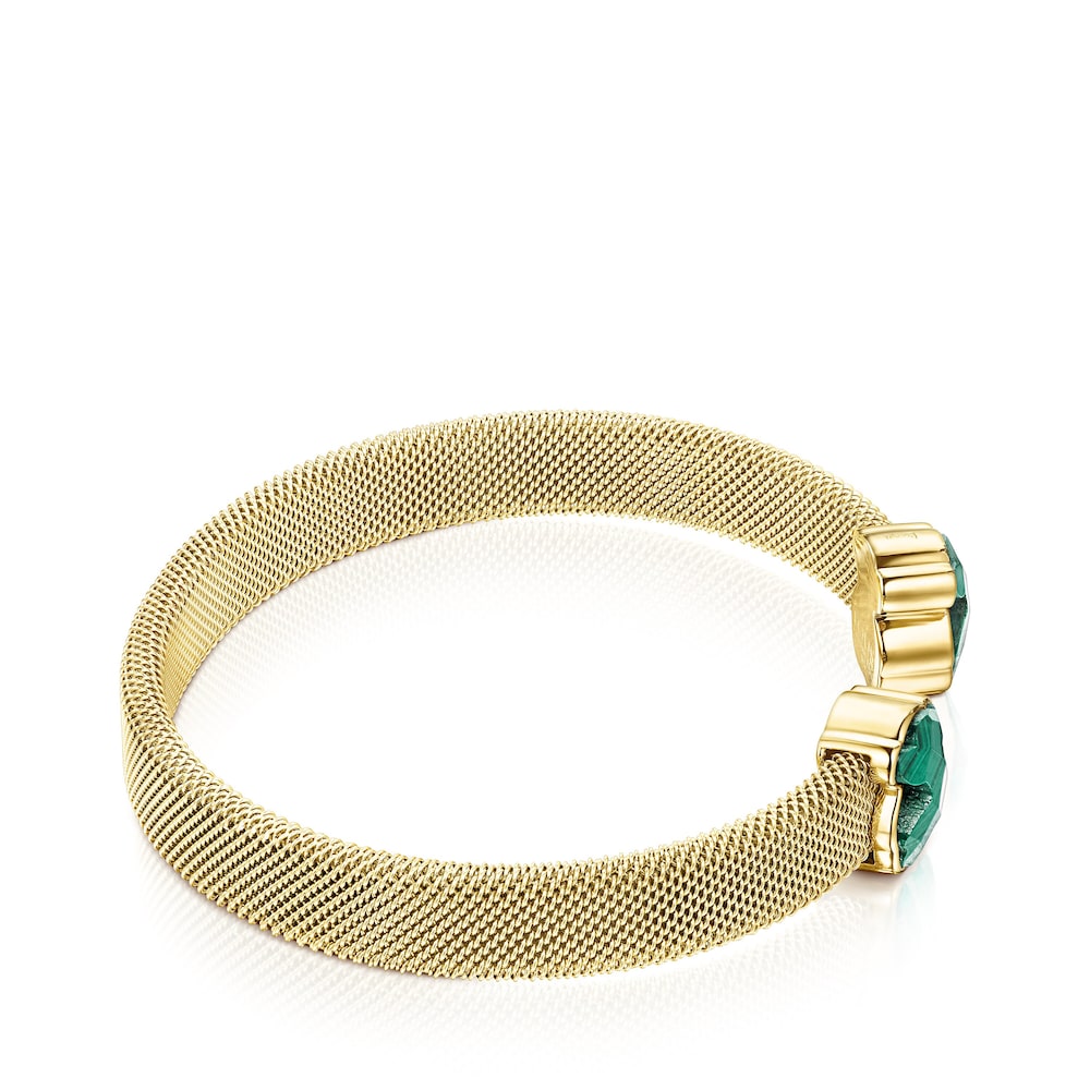 Gold-colored IP Steel Mesh Color Bracelet with Malachite