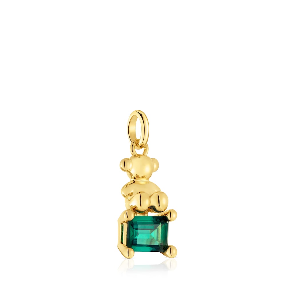 Small 18kt gold plating over silver bear motif Pendant with lab-grown green emerald Bold Bear LGG