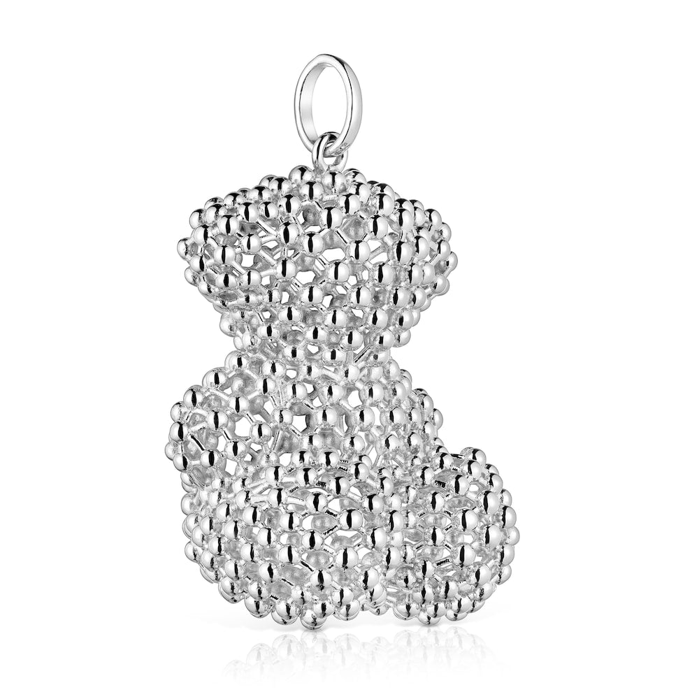 Medium silver bear motif Pendant with lab-grown lilac-colored sapphire Color Bear LGG