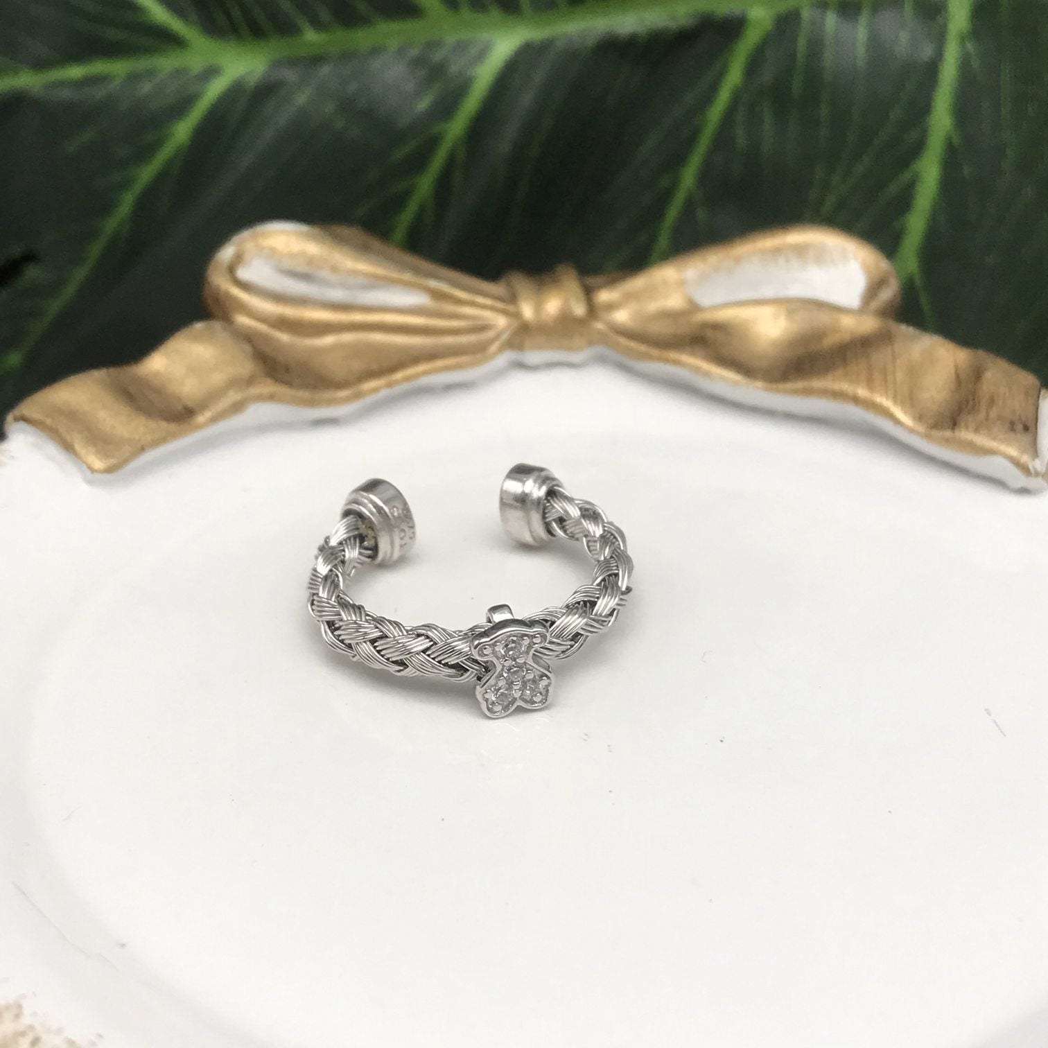 • Steel and Gold Icon Mesh Ring with Pearl Bear motif