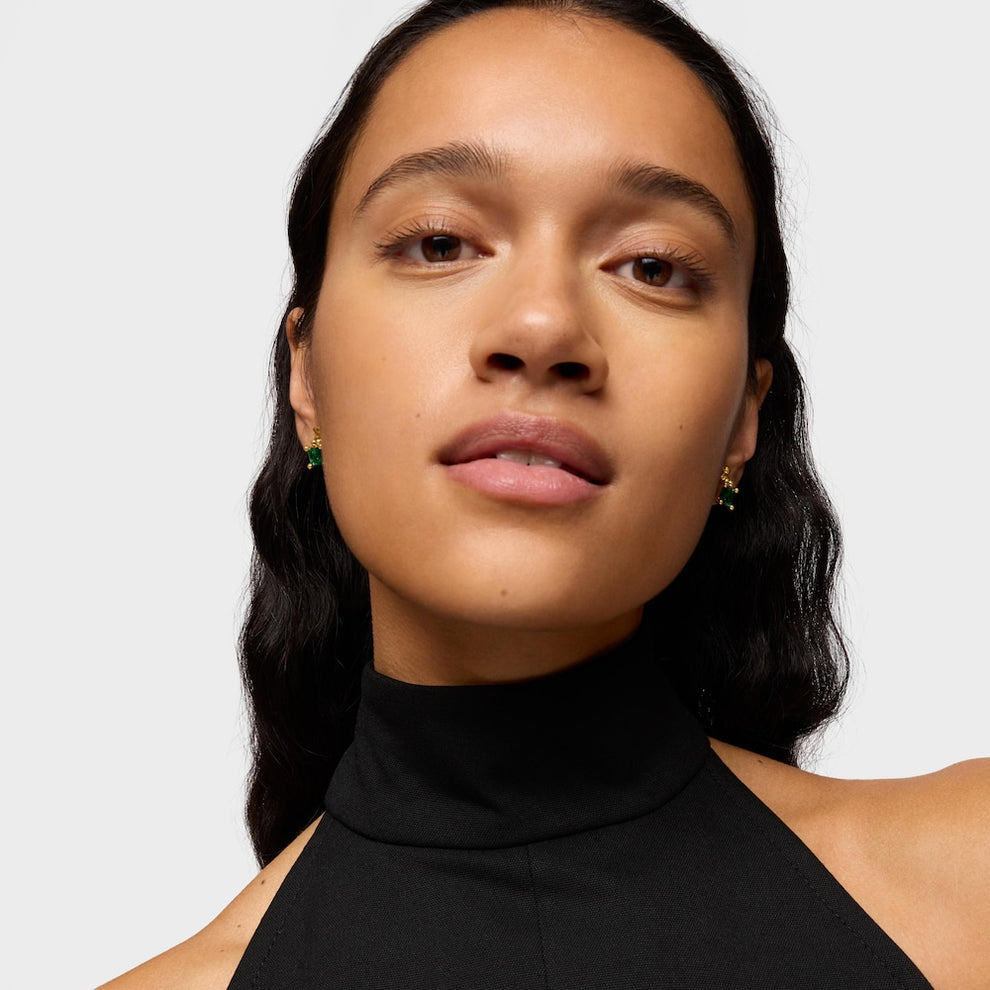 Bold Bear LGG bear motif earrings in 18kt gold-plated silver with faceted octagonal-cut green emerald. Earring size 14mm. Push back. Piece made of 18to23kt gold-plated sterling silver with a thickness of 3microns. This quality guarantees a greater durability of the jewel. Note Piece created with lab-grown gemstones.You can buy the 18 kt gold plating over silver bear motif Earrings with laboratory-grown emerald Bold Bear LGG