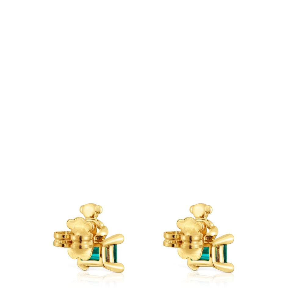 Bold Bear LGG bear motif earrings in 18kt gold-plated silver with faceted octagonal-cut green emerald. Earring size 14mm. Push back. Piece made of 18to23kt gold-plated sterling silver with a thickness of 3microns. This quality guarantees a greater durability of the jewel. Note Piece created with lab-grown gemstones.