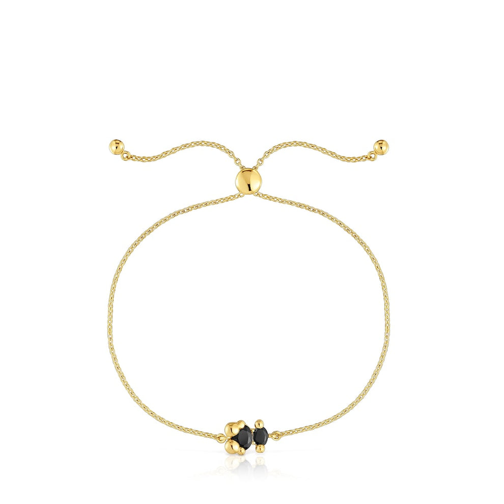 Color Bear chain bracelet with 18kt gold plating over silver and faceted oval-cut onyx in the shape of a bear. Motif size 8 mm. Bracelet length 23cm. Slider clasp. It is made of sterling silver with 18to23kt gold plating and has a thickness of 3microns. This quality guarantees the piece will have greater durability.You can buy the 18kt gold plating over silver and onyx bear motif chain Bracelet Color Bear at the online store. Find out how easy it is to buy bracelets at .
