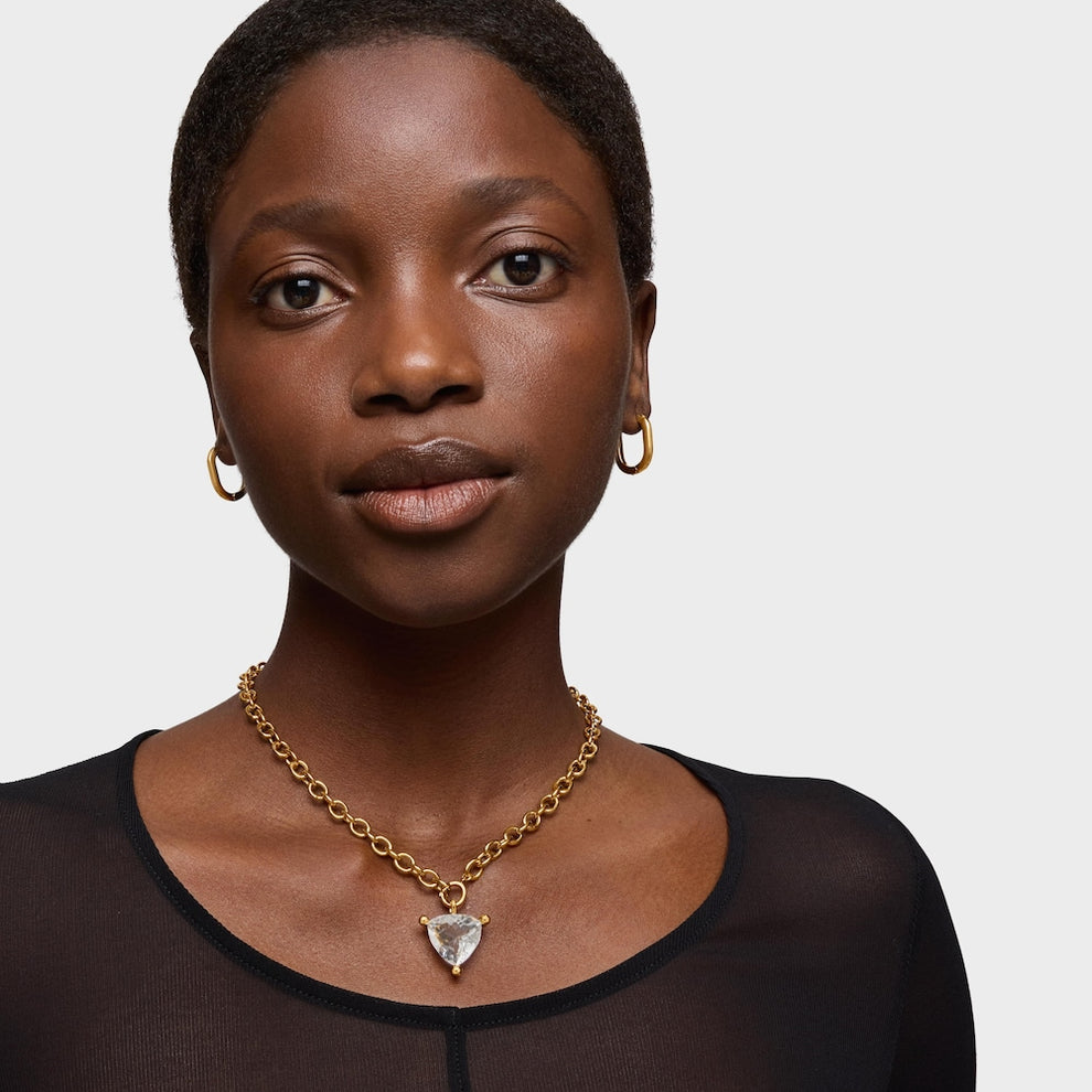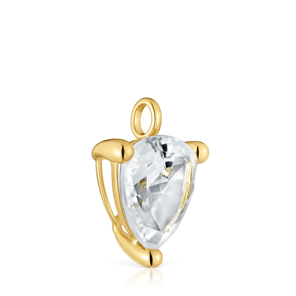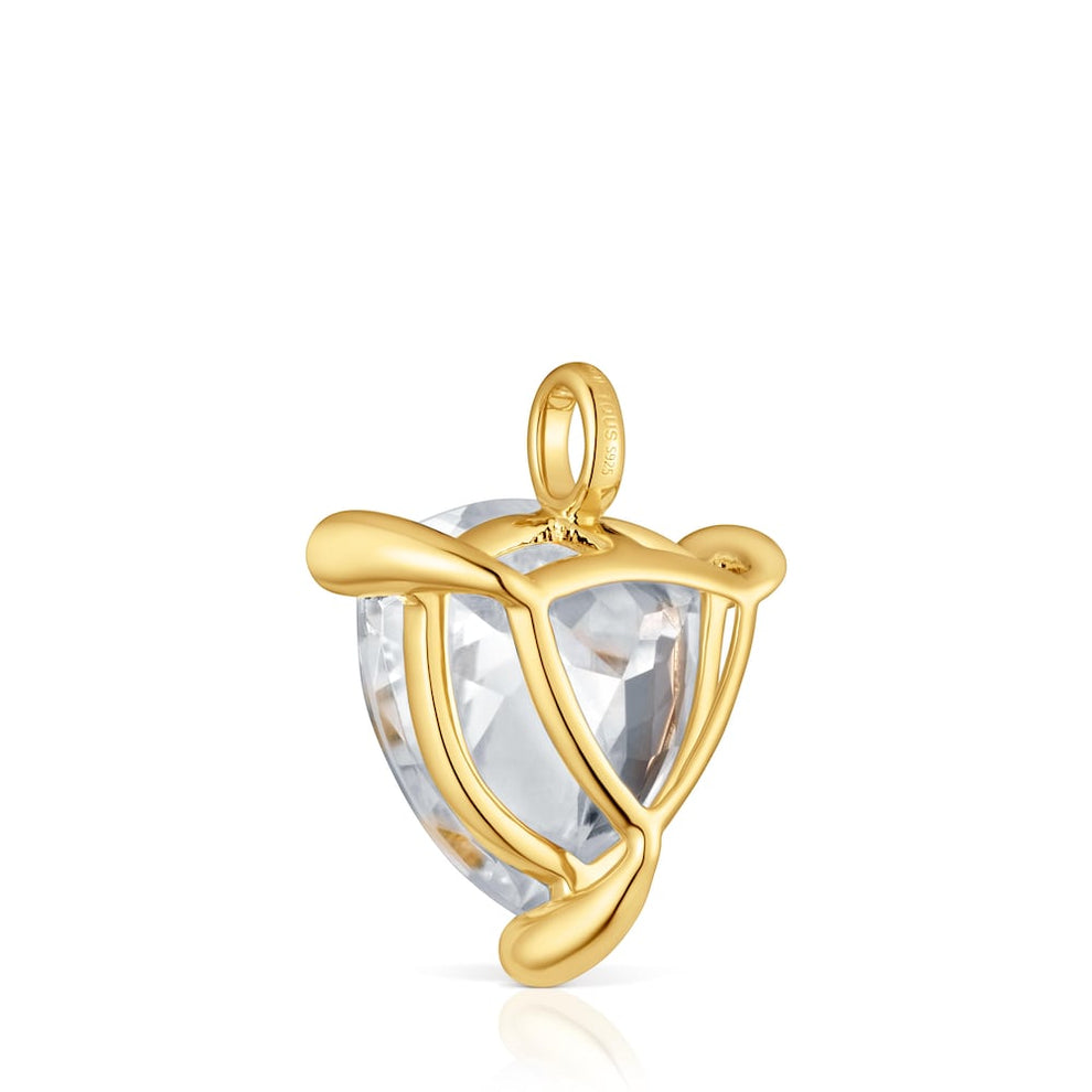 Small Color White pendant with 18kt gold plating over silver and trillion-cut faceted rock crystal quartz. Motif size 18mm. This item does not include the chain. It is made of sterling silver with 18to23kt gold plating and has a thickness of 3microns. This quality guarantees the piece will have greater durability.