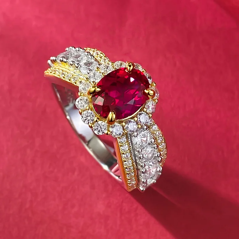 6x8MM Ruby Full Diamond Ring S925 Pure Silver Jewelry Wedding Engagement Party Anniversary Birthday Gift
