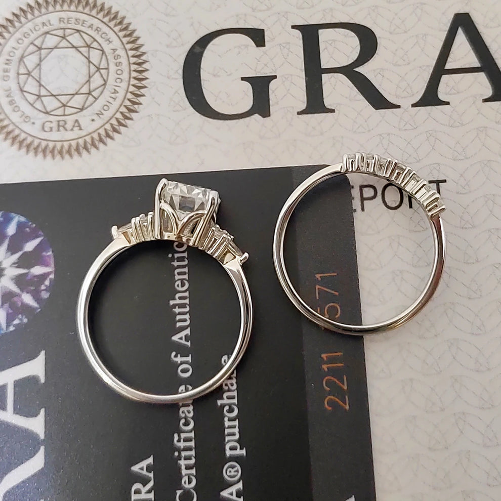 2ct 7x9MM Oval Moissanite Two Rings with Certificate Laboratory Diamond Ring Women's Wedding Jewelry 18K White Gold Plated S925 Silver