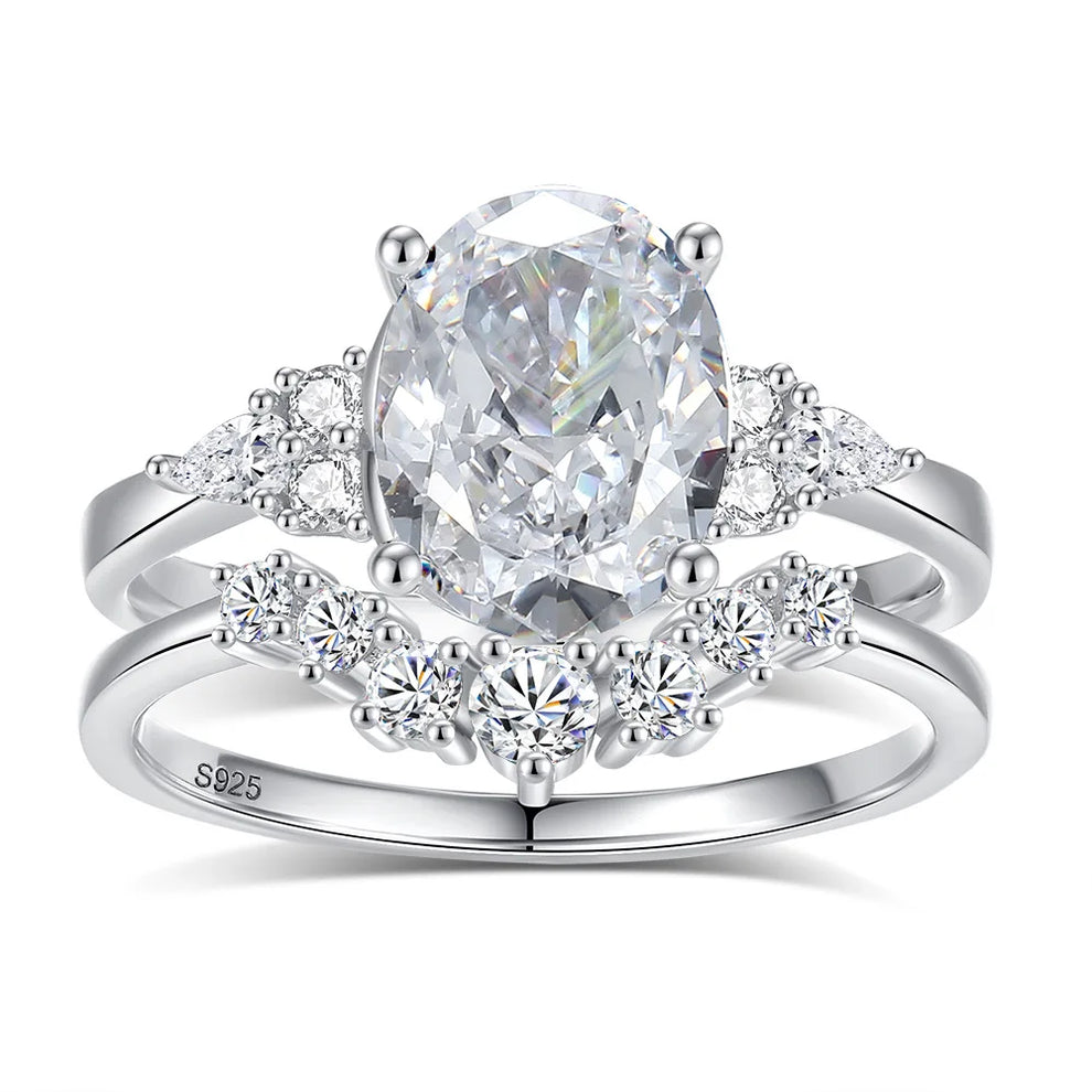 7x9MM Oval Moissanite Two Rings with Certificate 2ct Laboratory Diamond Ring Women Wedding Jewelry S925 Silver