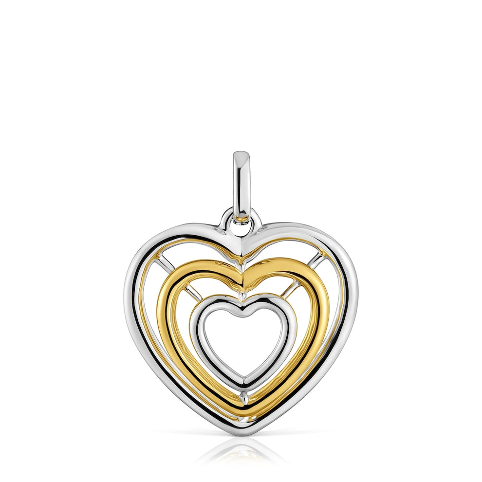 Bickie triple heart pendant with 18 kt gold plating over silver and sterling silver. Pendant size 21mm. This item does not include the chain. It is made of sterling silver with 18to23kt gold plating and has a thickness of 3microns. This quality guarantees a greater durability of the jewel.