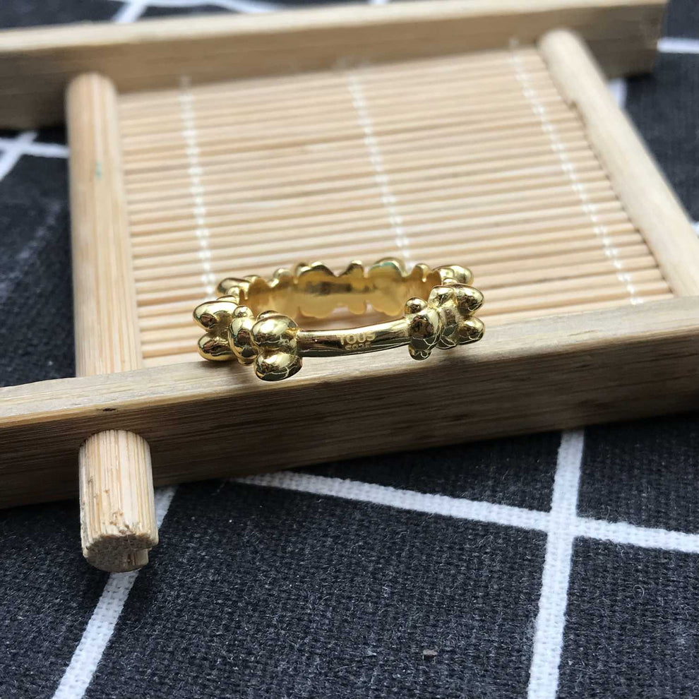 Bold Bear medium Ring with 18kt gold plating over silver and bear motifs