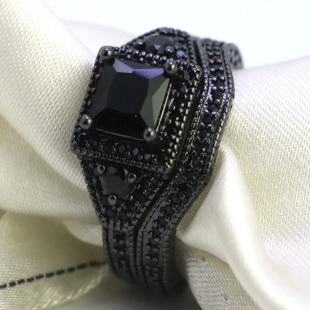 Charm Couple Rings Romantic Black Rhinestones Female Rings Set Mens Two Rows Black CZ Stone Stainless Steel Ring Wedding Jewelry
