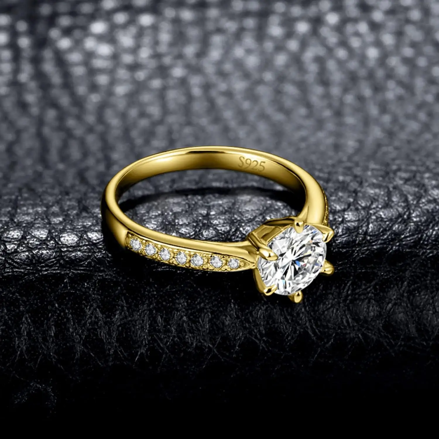 Classic 1-carat Moissanite Ring with Certificate Laboratory Diamond Rings Women Wedding Jewelry 18K Gold Plated S925 Silver
