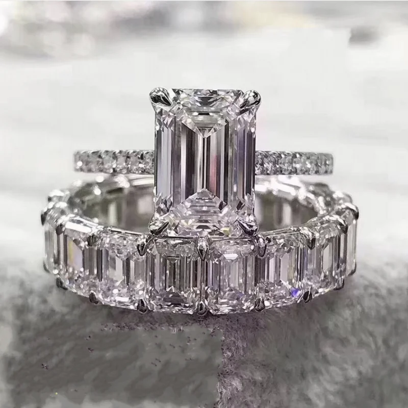 Elegant 925 Sterling Silver Emerald-Cut Diamond Ring for Wedding, Engagement or Cocktail – Women's Fine Jewelry. 100% Genuine.