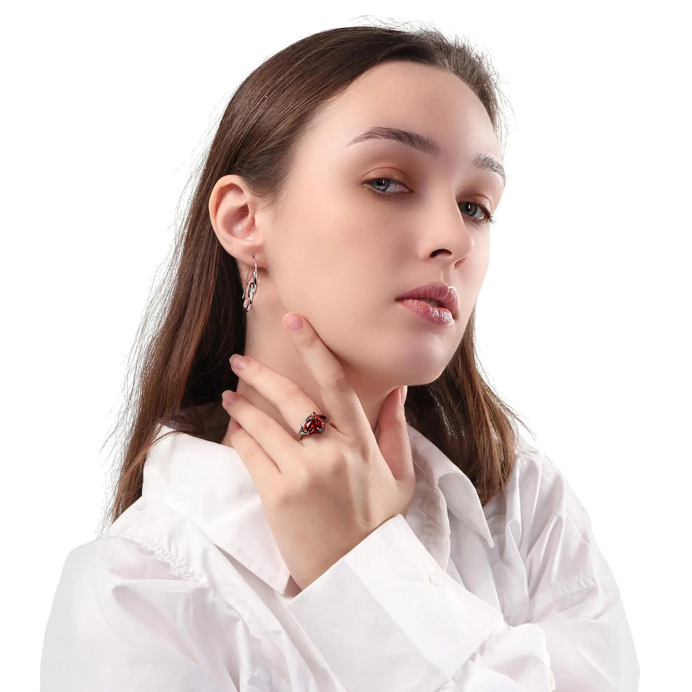 Couple Rings Romantic Women Heart Red Rhinestones Zircon Ring Men Stainless Steel Celtic Dragon Rings Wedding Jewelry
