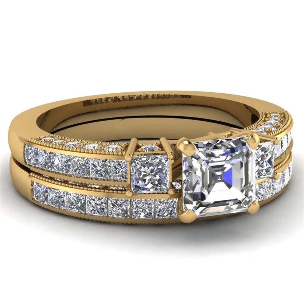 Couple Rings Vintage Stainless Steel Men Wedding Ring Elegant Square Cut Zircon Ring Set Bridal Engagement Jewelry Gifts