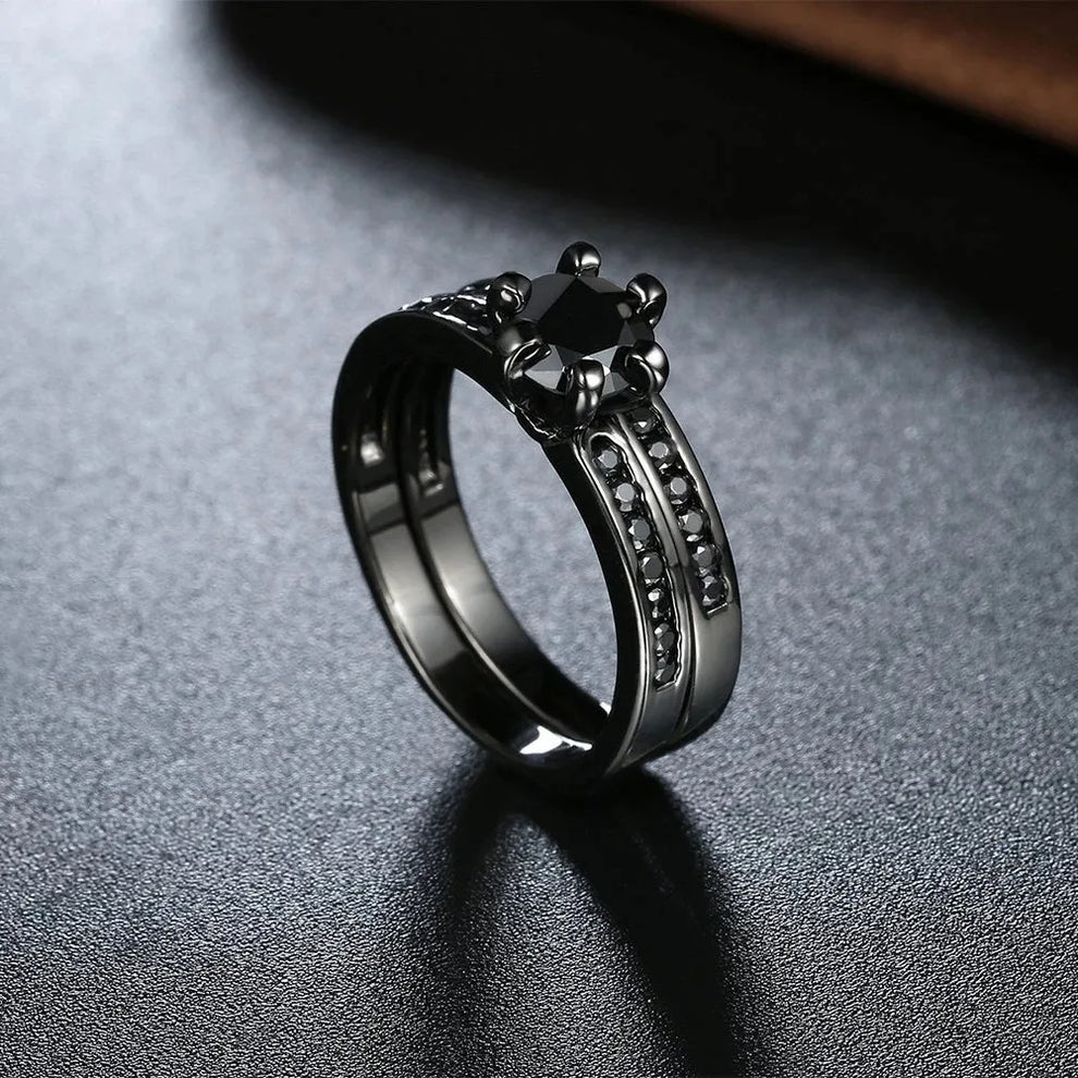 Fashion Couple Rings Women's Black Rhinestones Zirconia Rings Set Men's Stainless Steel Zirconia Rings Wedding Band Jewelry Gift