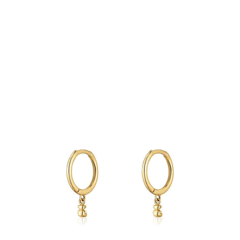 18kt gold hoop earrings with bear pendant charm Bold Bear. Bear pendant size 3mm. Inner diameter of the earring 8mm.