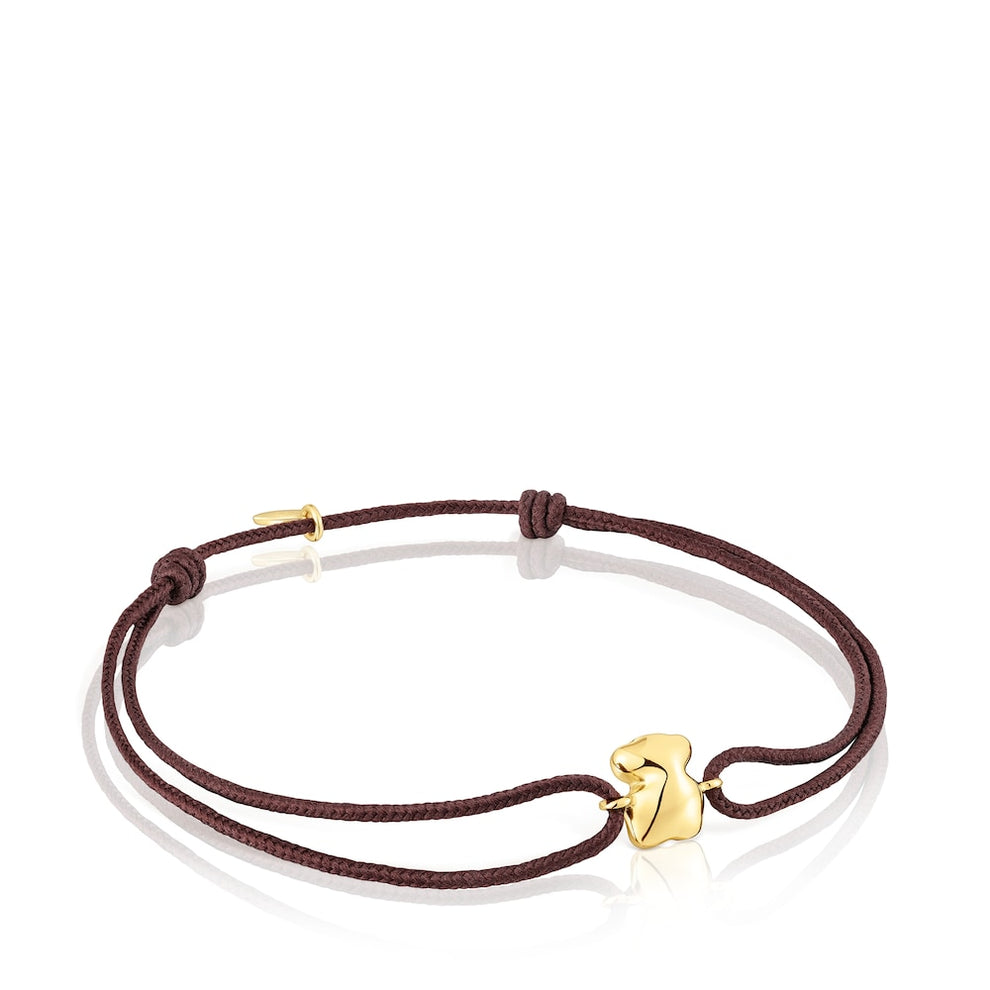 Balloon bracelet with bear motif in 18kt gold and brown cord. Motif size 8x6.64mm. Maximum bracelet length 20cm. Adjustable cord closure.