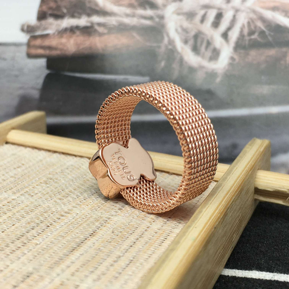Gold-colored IP Steel Mesh Color Ring with Amethyst Bear motif
