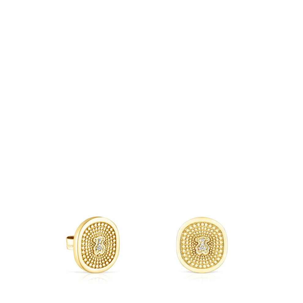 Oursin earrings in 18kt gold with 0.02ct diamonds on the inner part of the circumference, except for the bear. Earring size 12mm. Size of the bear 4mm. Diamond quality HSI. Push back. The Oursin collection in gold with diamonds guarantees full traceability of all its materials, as well as their manufacturing site, and has the documentation to prove this.