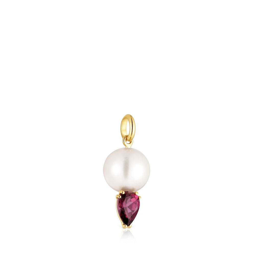 Ivette pendant in 18kt yellow gold with pear-cut rhodolite and rose-colored cultured freshwater pearl. Gemstone size 4x6mm. Size of the cultured pearl 8mm. Pendant size 14mm. This item does not include the chain.You can buy the gold Pendant with rhodolite and cultured pearl Ivette at the online store. Find out how easy it is to buy pendants at .