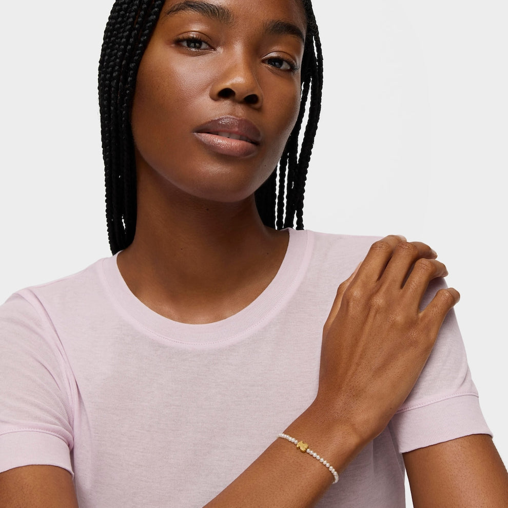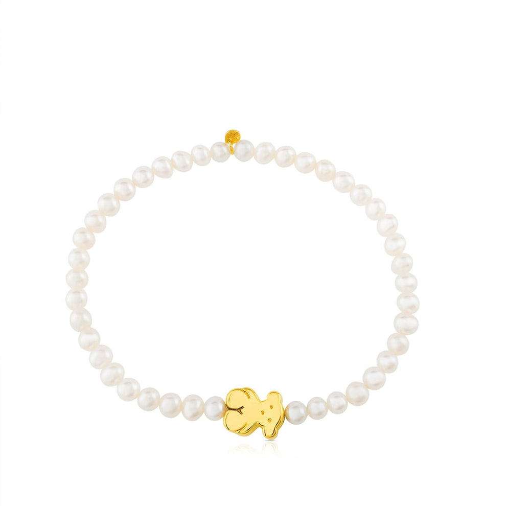 Sweet Dolls bracelet in 18kt yellow gold and choker pearls. Size 0.8 cm. Length 14 cm.GOLD BRACELET,PEARL 3MM, BABY,BEAR