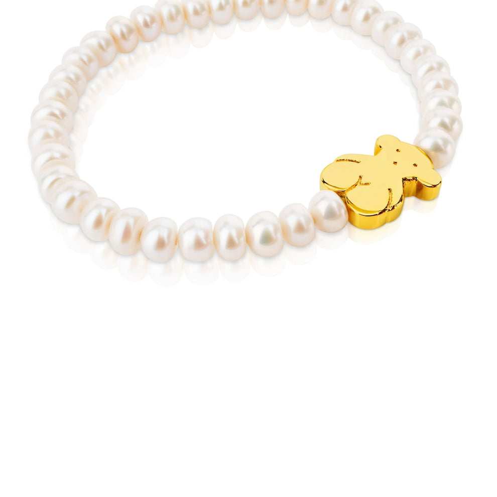 Sweet Dolls elastic bracelet in 18kt yellow gold and cultured freshwater pearls. Length 19 cm.