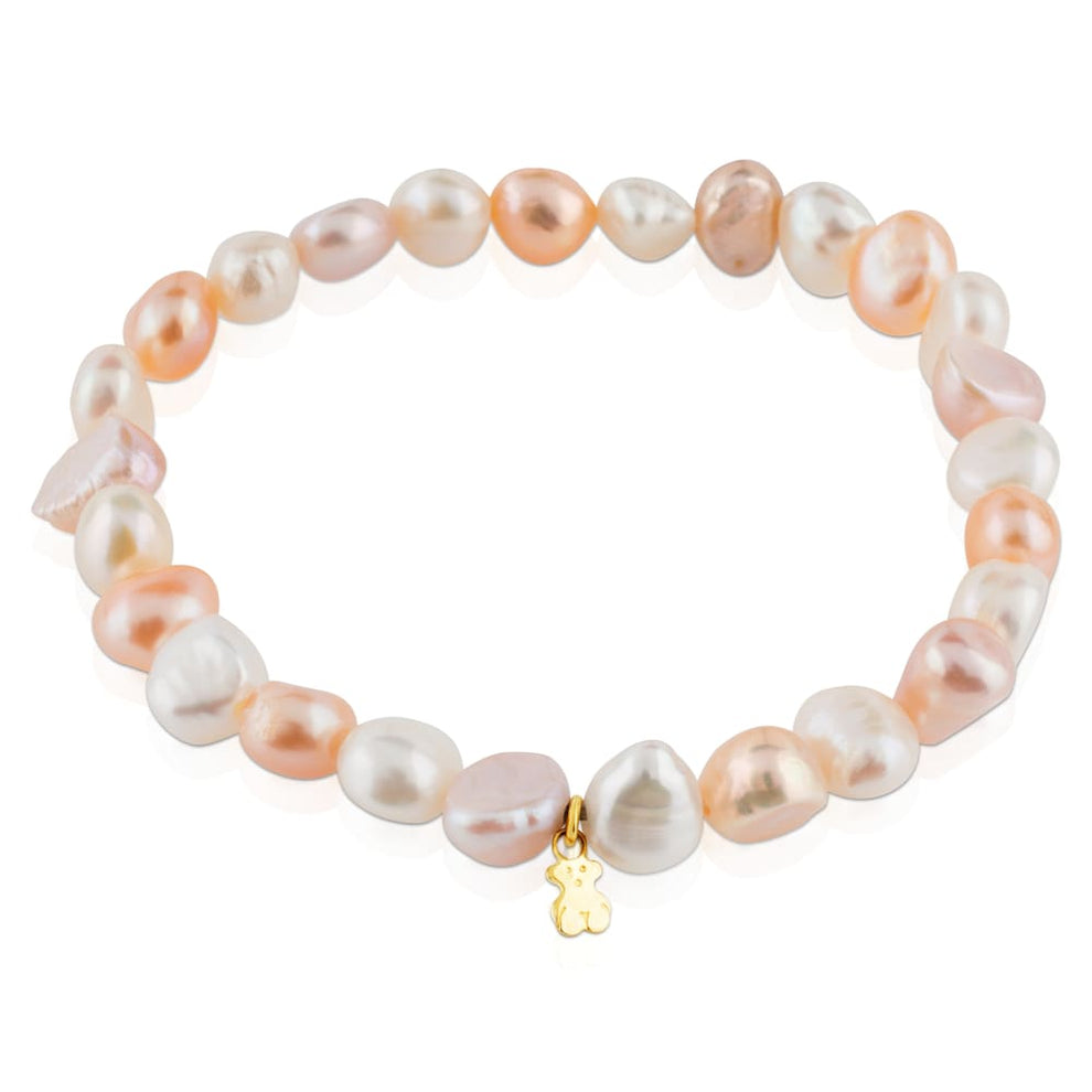 Gold Pearls Bracelet with multicolor baroque pearls and Bear motif