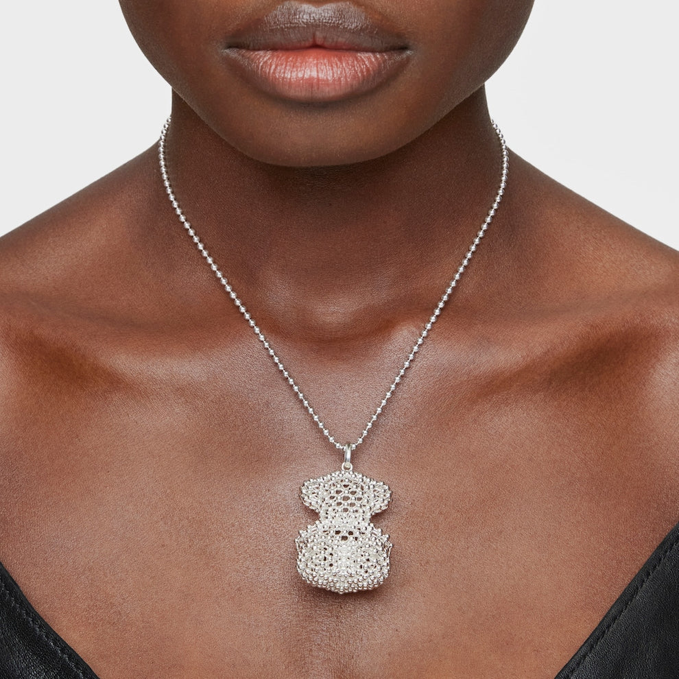 Large sterling silver texturized 3D bear pendant Bold Bear. Size of bear 38mm. This item does not include the chain.