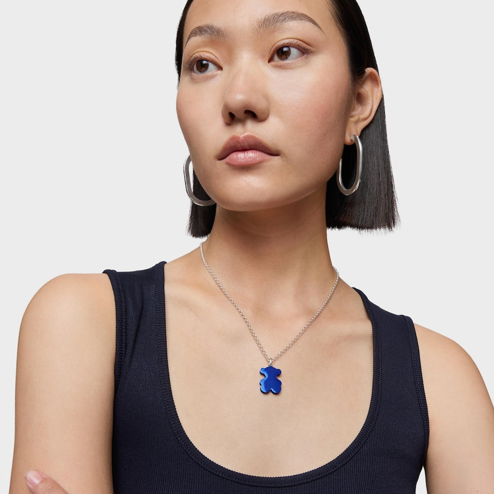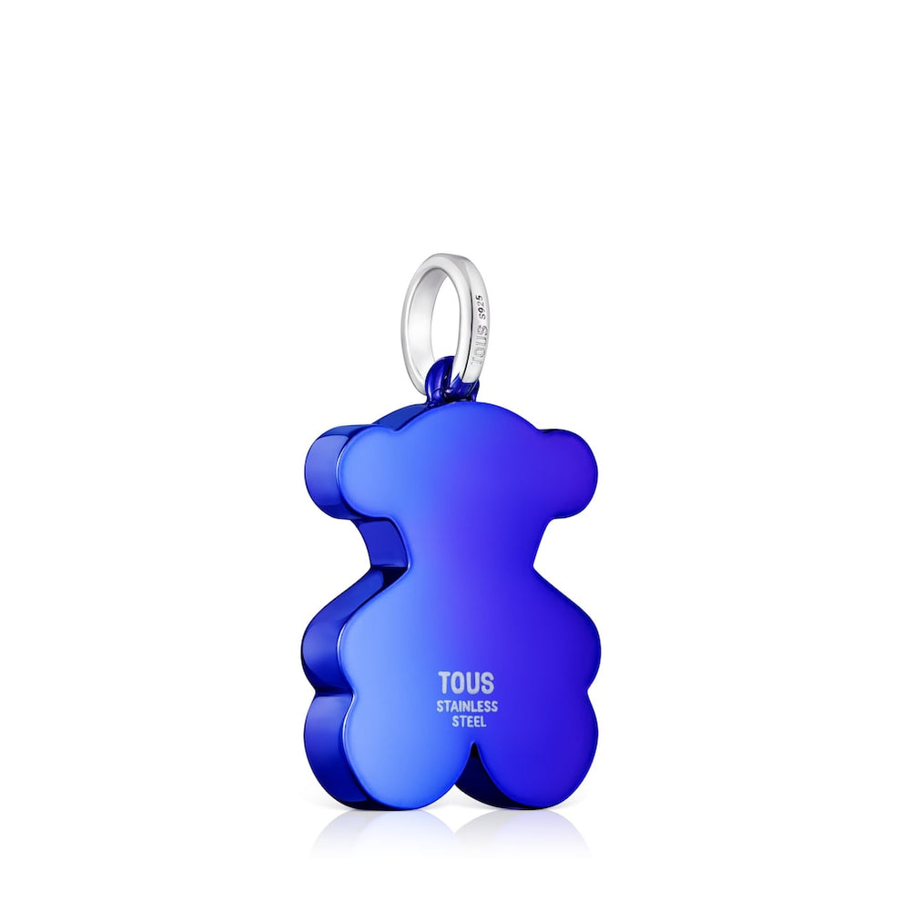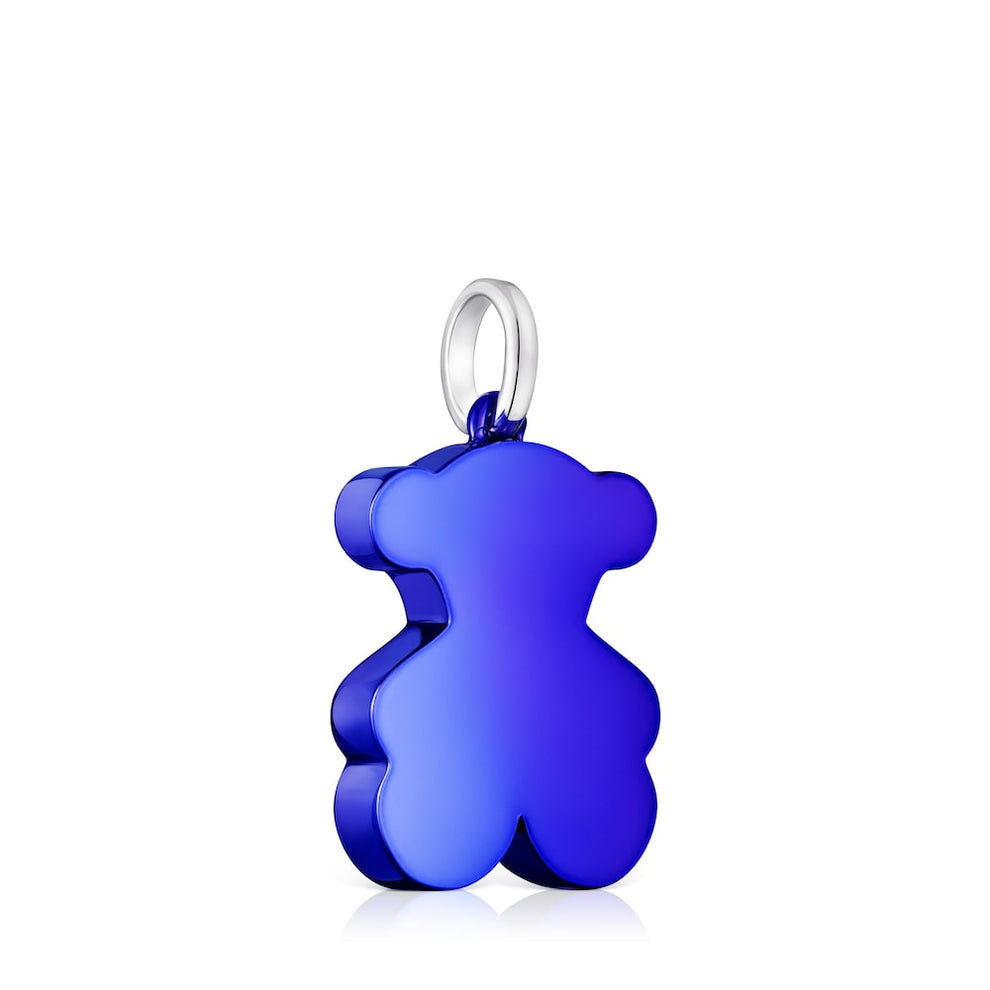Medium Sweet Dolls bear pendant in a blue steel finish and a washer in sterling silver. Bear size 22mm. This item does not include the chain.