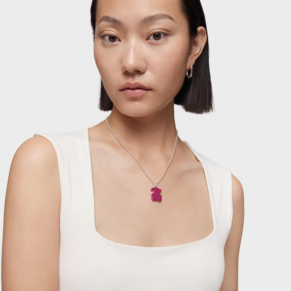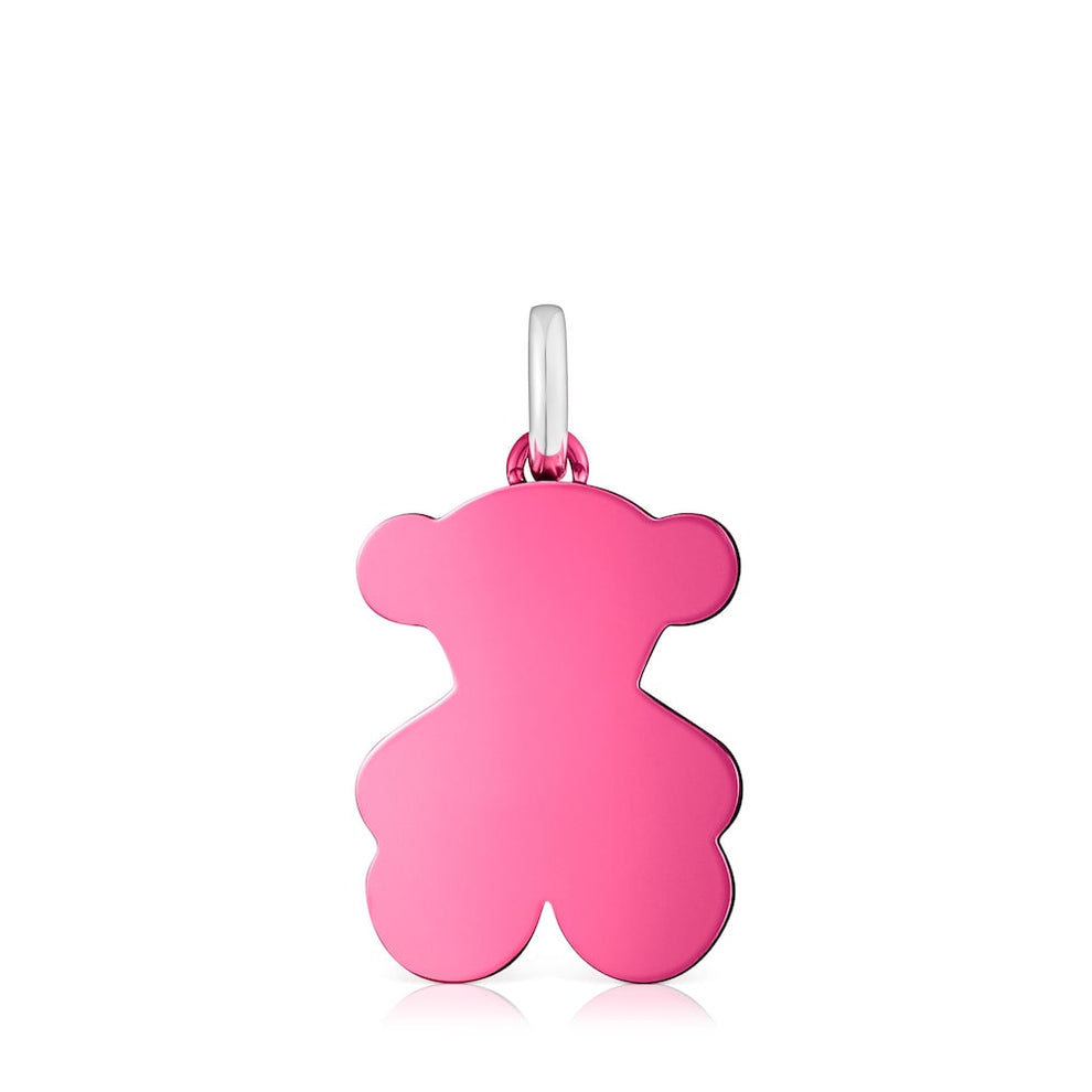 Medium Sweet Dolls bear pendant in a pink steel finish with a washer in sterling silver. Bear size 22mm. This item does not include the chain.