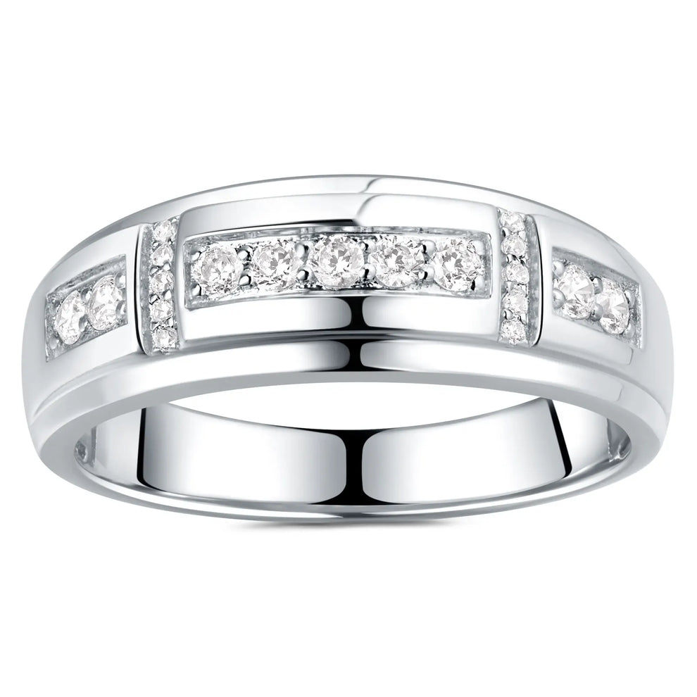Elegant Mens Wedding Band 925 Sterling Silver Moissanite Rings for Him Half Eternity Round Engagement Ring