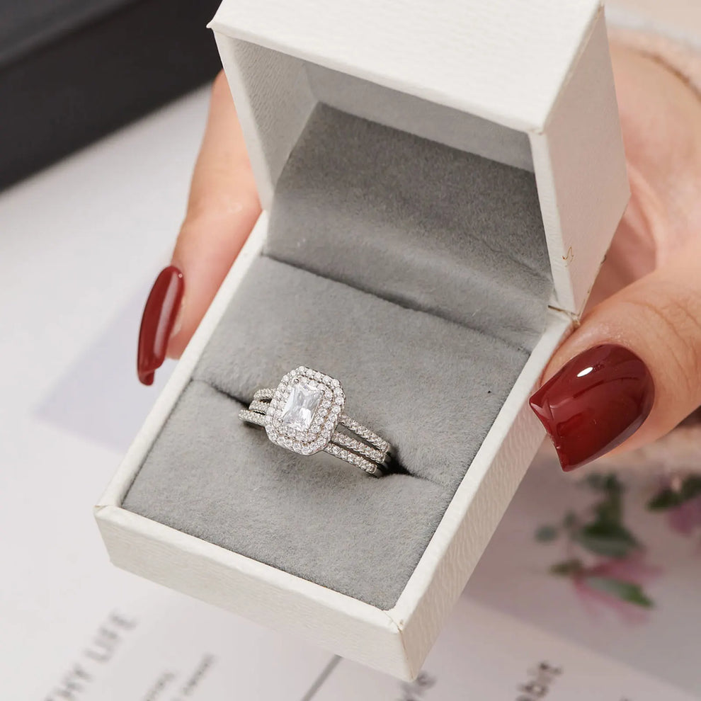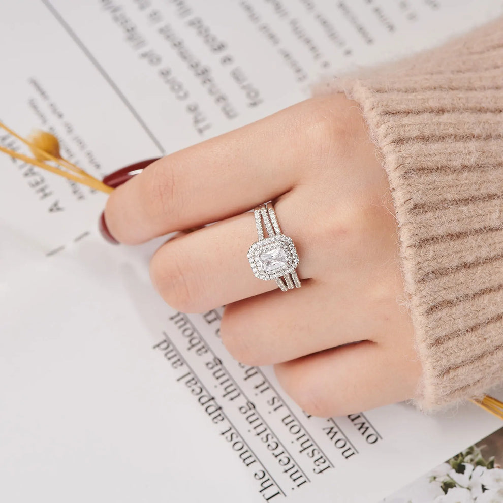 Solid 925 Silver Wedding Jewelry Double Halo Radiant Cut Engagement Bridal Rings for Women White AAAAA Cubic Zirconia