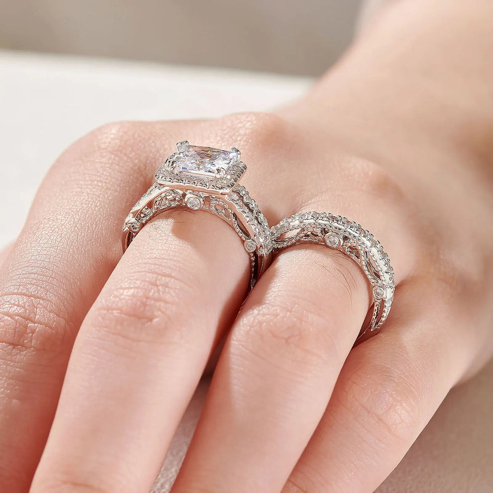 Vintage Wedding Rings for Women Solid 925 Sterling Silver 4Ct Princess Cut 5A Cubic Zircon 2Pcs Bridal Set Fine Jewelry