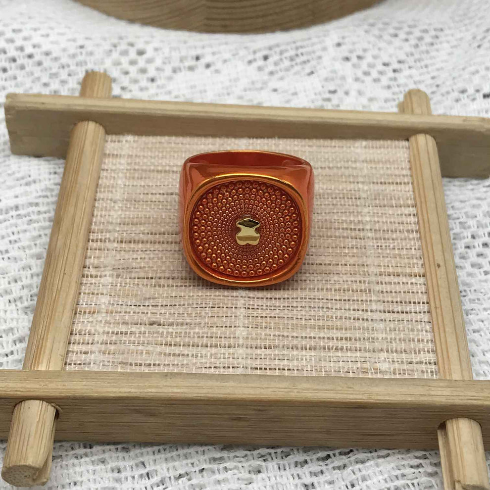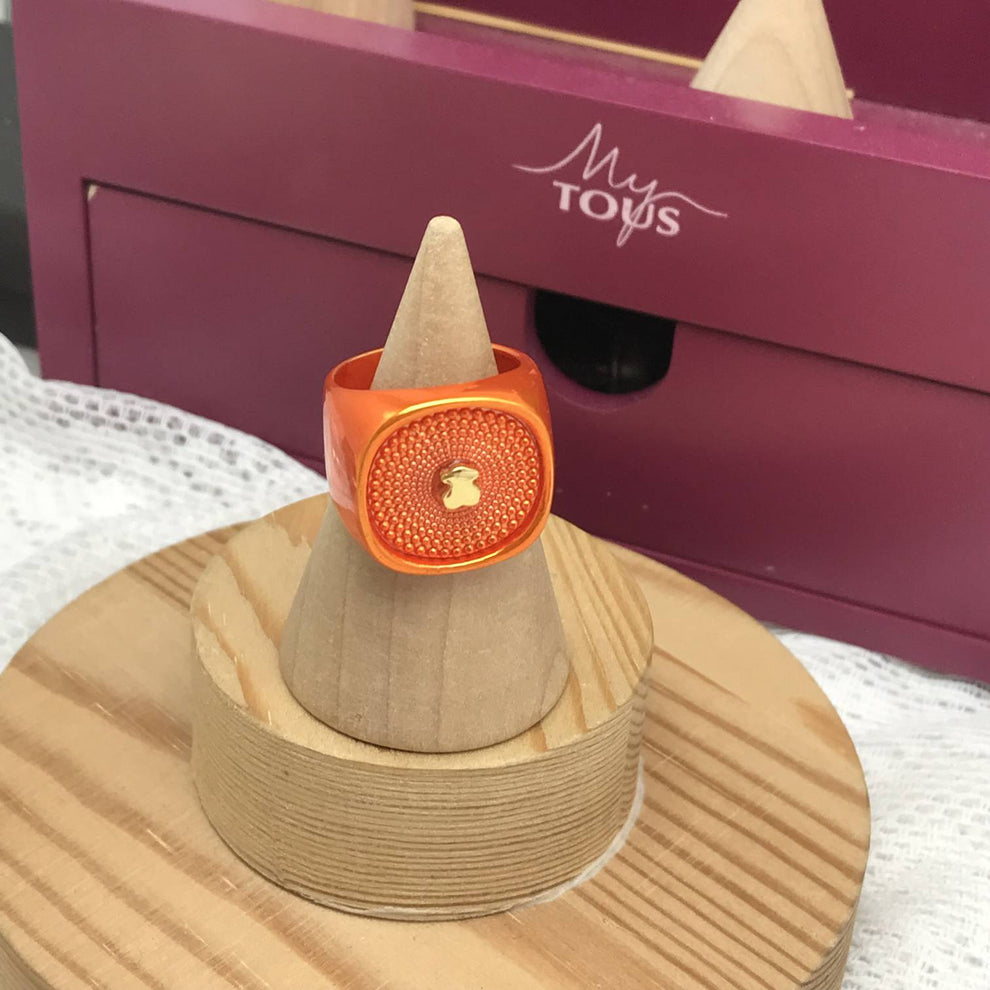 Oursin seal in orange sterling silver with a central bear with plating over silver. Size of bear: 6 mm. Width at the top: 19 mm. Width at the bottom: 8 mm. Ring thickness: 2.3 to 3.6 mm.