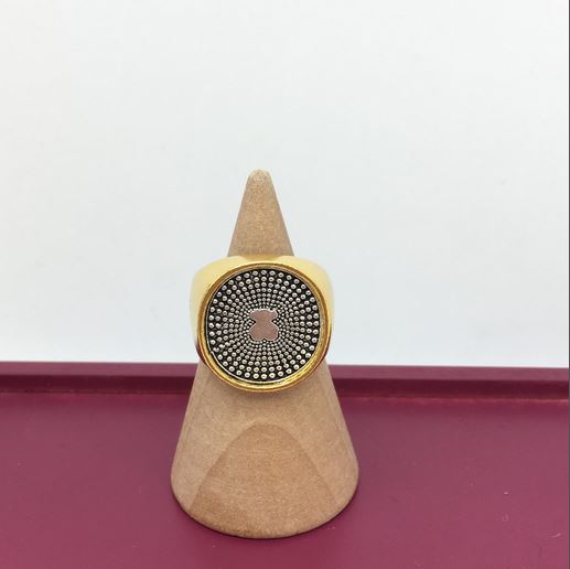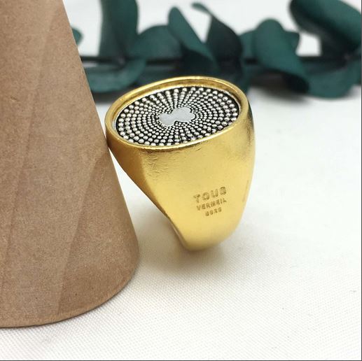 Two-tone Oursin silver vermeil ring with sterling silver bear and black enamel