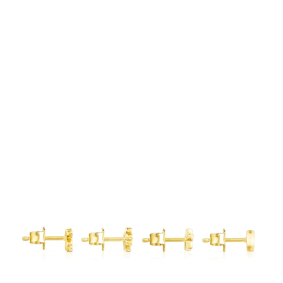 Set of four Teddy Bear earrings in silver vermeil comprising a chrome diopside four-leaf clover, a ruby heart, an iolite star and a bear. Size of earrings 2.35mm. Push back. Sterling silver plated with 18kt gold with a thickness of 3 to 5 microns and with no other metal between them. Production technique Casting.You can buy the set of silver vermeil Teddy Bear earrings with gemstones at the online store. Find out how easy it is to buy earrings at .
