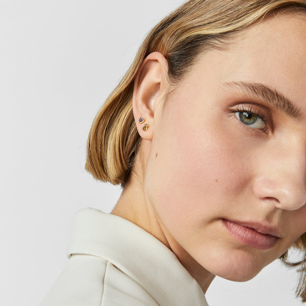 Set of four Teddy Bear earrings in silver vermeil comprising a chrome diopside four-leaf clover, a ruby heart, an iolite star and a bear. Size of earrings 2.35mm. Push back. Sterling silver plated with 18kt gold with a thickness of 3 to 5 microns and with no other metal between them. Production technique Casting.Would you like us to let you know when this product becomes available again?