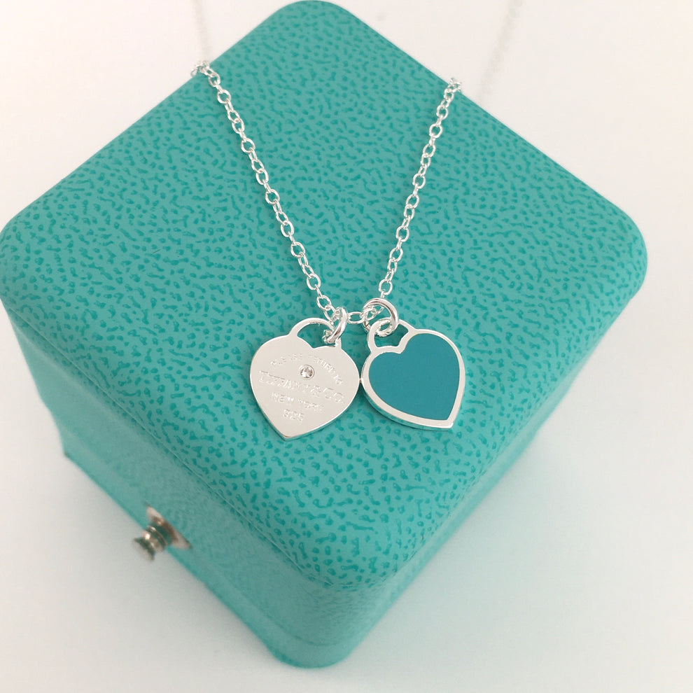 Set of Tiffany & Co. Return to Tiffany Small Blue Heart Stud Earrings Silver Necklace earrings