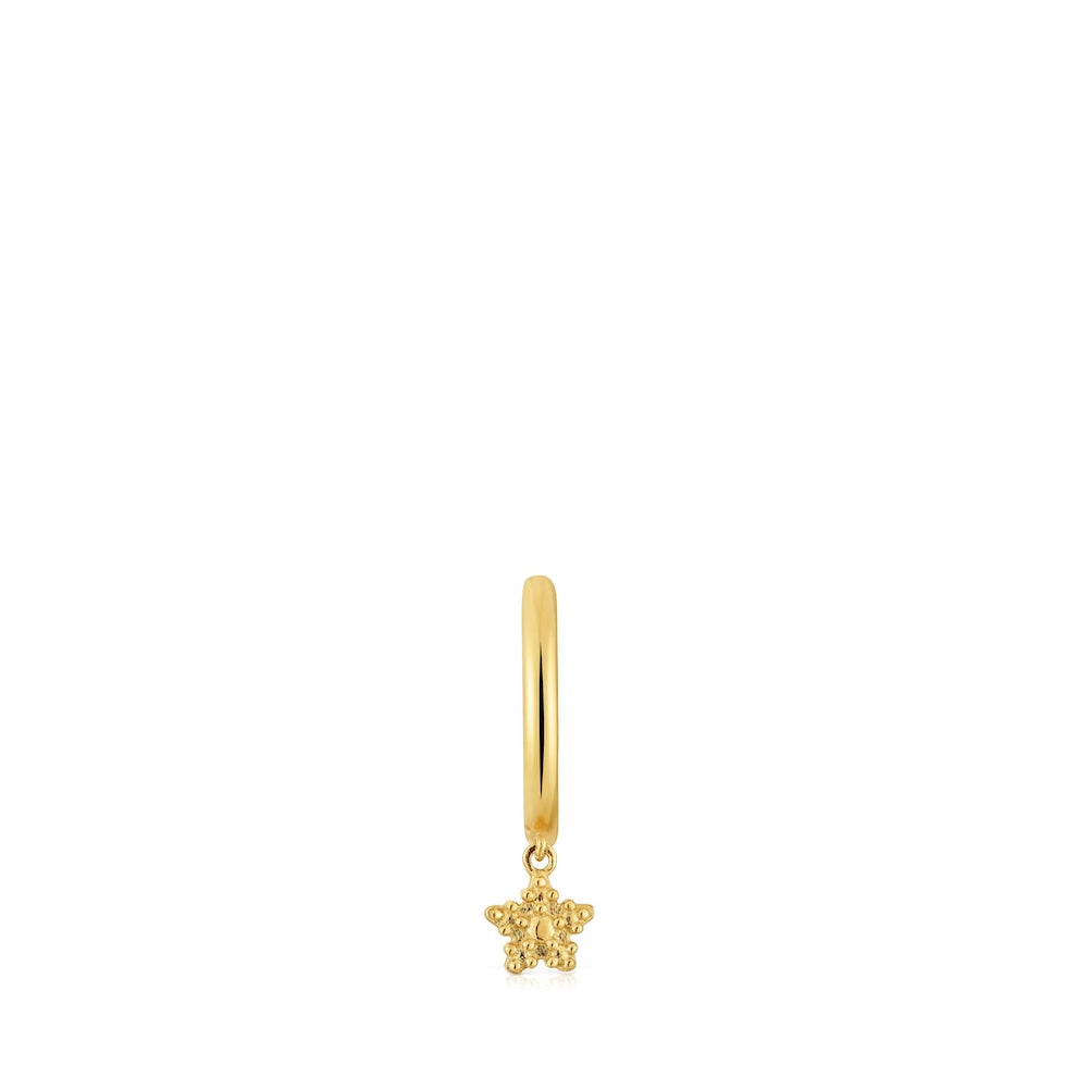 Short Grain individual earring with 18kt gold plating over silver and star-shaped motif pendant TOUS Grain. Earring size 10mm. Motif size 5.1mm. Piece made of sterling silver with 18to23kt gold plating with a thickness of 3microns. This quality guarantees a greater durability of the jewel.