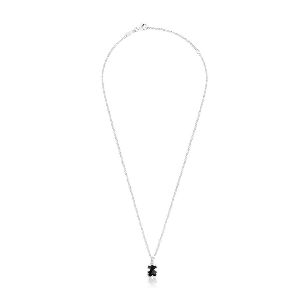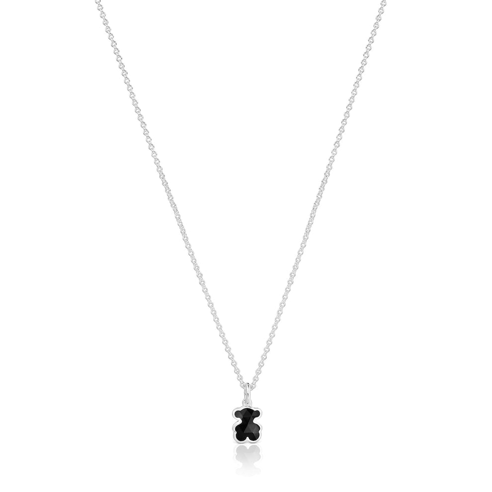 Short Icon Color necklace in sterling silver with a bear motif in faceted onyx. Size of bear 6mm. Necklace length 45cm. Lobster clasp.