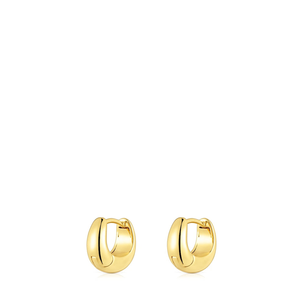 Short, thick Basics hoop earrings with 18kt gold plating over silver. Earring size 10.5mm. Piece made of sterling silver with 18to23kt gold plating and has a thickness of 3microns. This quality guarantees a greater durability of the jewel.
