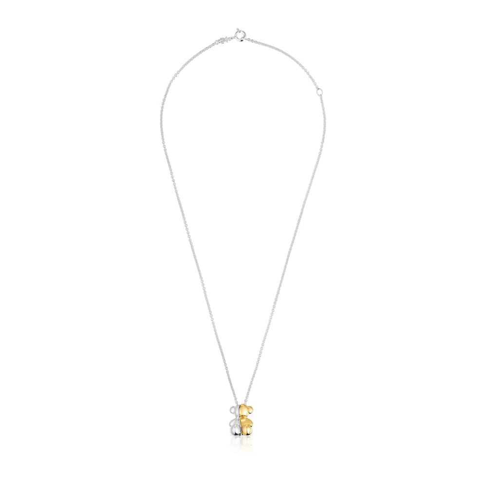 My Other Half short necklace with 18kt gold plating over silver and sterling silver with bear motif. Size of the bear 16mm. Necklace length 40-45cm. Spring ring clasp. Piece made of sterling silver with 18to23kt gold plating and has a thickness of 3microns. This quality guarantees a greater durability of the jewel. This item is made up of two pieces joined together to form a bear.You can buy the short two-tone bear Double necklace My Other Half at the online store. Find out how easy it is to buy necklaces at .