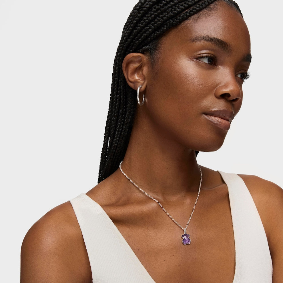 Icon Color pendant in sterling silver and amethyst. Pendant size 1.5cm. This item does not include the chain. Production technique Casting.Would you like us to let you know when this product becomes available again?