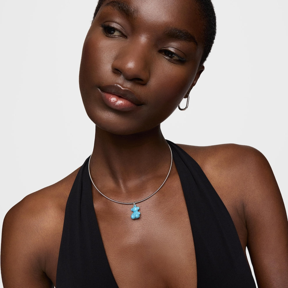Bold Bear bear pendant in pearlescent sky blue ceramic with a bail in sterling silver. Size of the bear 16mm. This item does not include the chain.