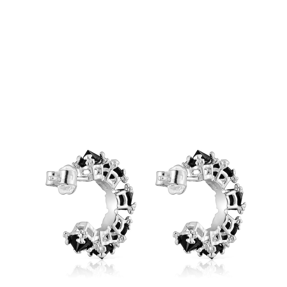 Color Pills hoop earrings in sterling silver with faceted round-cut onyx. The gemstones are set within claws in the shape of the Bold Bear bear. Gemstone size 4mm. Inner diameter of the earring 9mm. Push back.Refresh Your Look,