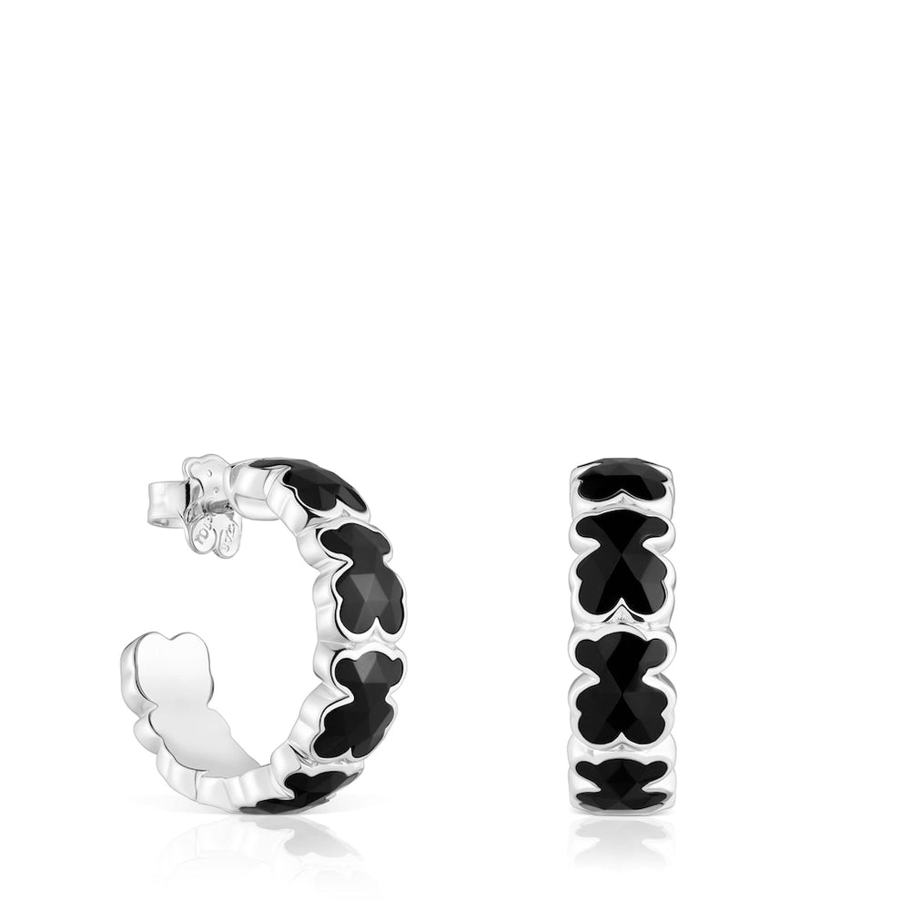 Silver Hoop earrings with onyx bears Icon Color |