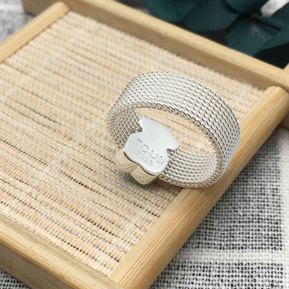 Mesh Color ring in sterling silver with amazonite bear and silver bezel. Size of bear: 1.1 cm. Ring width: 8 mm