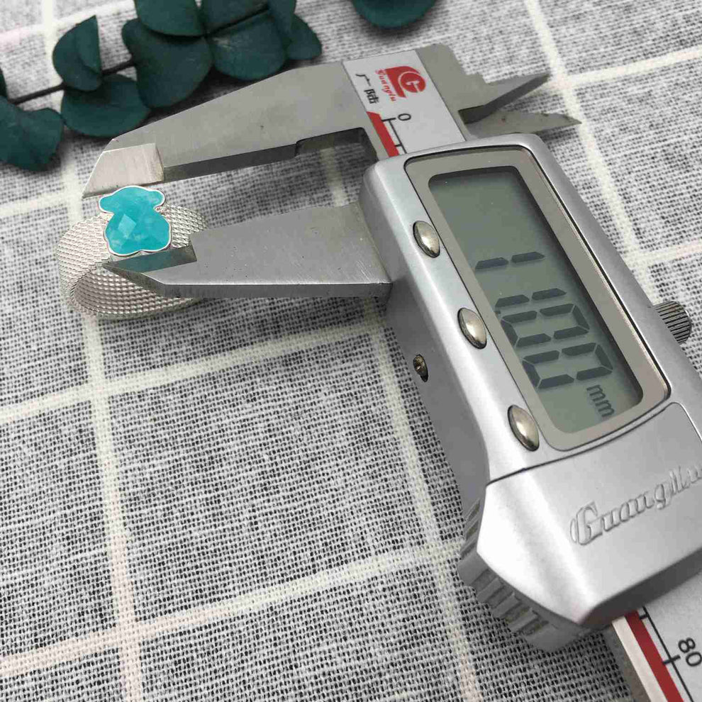 Silver Mesh Color Ring with faceted Amazonite Bear motif